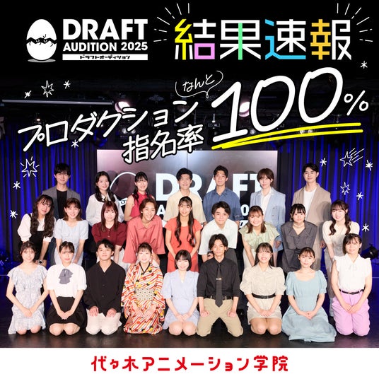 株式会社代々木アニメーション学院(本社:東京都千代田区 代表取締役社長:橋本 大輝)は、声優や俳優などの表現者を目指す学生を対象に実施した『ドラフトオーディション2025』の舞台裏や学生の挑戦の様子を収めた、ドキュメンタリー動画を本日公開しました。