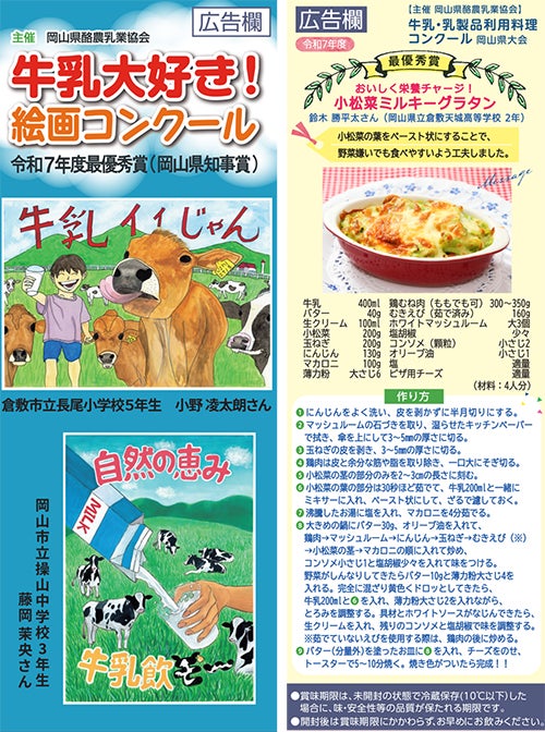 本コンクールは、岡山県の酪農振興と牛乳・乳製品の普及を目的として岡山県酪農乳業協会が主催し、絵画コンクールは2006年から、料理コンクールは1980年から行われています。