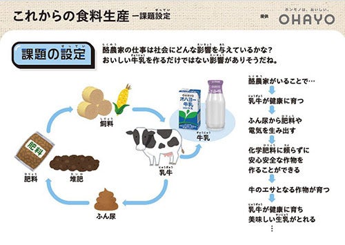 2024年からは、株式会社ベネッセコーポレーションと協業し、ICT学習教材「これからの食料生産とわたしたち~持続可能な酪農業を考えよう~」を開発しました。本教材は、ベネッセの学習ソフト「ミライシード」を通じて、小中学校の授業で活用されています。学校給食で日常的に飲んでいる牛乳を題材に、子どもたちが酪農の現状や課題を考えるきっかけを提供しています。