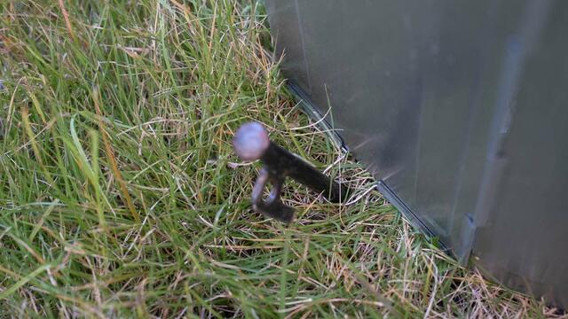 「大きいと倒れやすいんじゃない?」と思うかもしれませんが、スクリーンの底部にはリングが付いていて、ペグで固定できます。