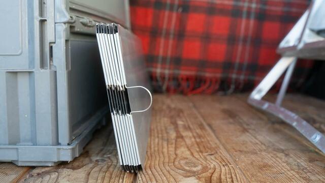 そんなとき、このスクリーンで箱を作り、磁石でゴミ袋を固定して即席ゴミ箱にしています。鋼板なので磁石が使えますし、ペグで固定できるので倒れる心配もありません。