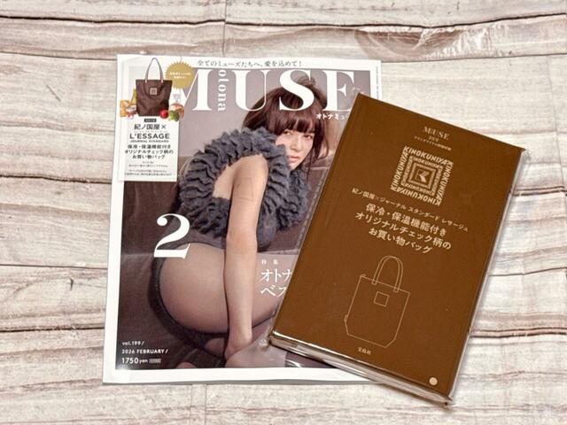 2025年12月26日(金)発売の雑誌『otonaMUSE(オトナミューズ) 』2026年2月号には、「紀ノ国屋×JOURNAL STANDARD L’ESSAGE(ジャーナル スタンダード レサージュ)」がコラボしたお買い物バッグが付録としてついてきます。