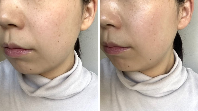 写真では見た目の変化がわかりづらいかもですが、赤みが落ち着き毛穴が引き締まった気がするのと、頬や口元に粉がふくこともなく、しっとりとした状態が続いているように感じています。