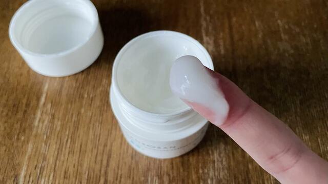 クリームはみずみずしく、伸びがいいです。かたくないので、塗り広げやすい~。