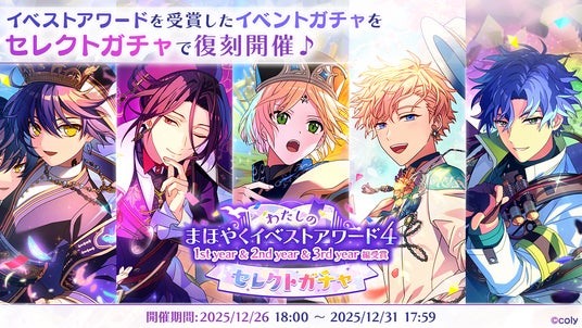 2025年に開催した「わたしのまほやくイベストアワード4」で選ばれたイベント(4~6年目)のガチャを復刻開催いたします!