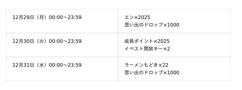 開催期間:2025年12月29日(月)00:00~2025年12月31日(水)23:59