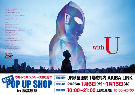 JR秋葉原駅 1階改札内 AKIBA LINKにて、1/6(火)~ 1/15(木)の期間「ウルトラマンシリーズ60周年 駅ナカ POP UP SHOP in 秋葉原駅」イベントが開催。「ウルトラマンシリーズ60周年」を迎えるプロジェクトを記念した「ウルトラマンシリーズ」のPOP UP SHOPとして各参加メーカーが多数の商品の販売を行います。