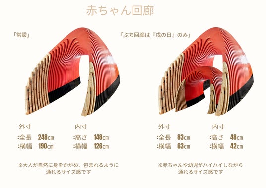 ・生後6か月から約3歳頃までの子どもたちが、安心してくぐれる高さと幅で設計しています。