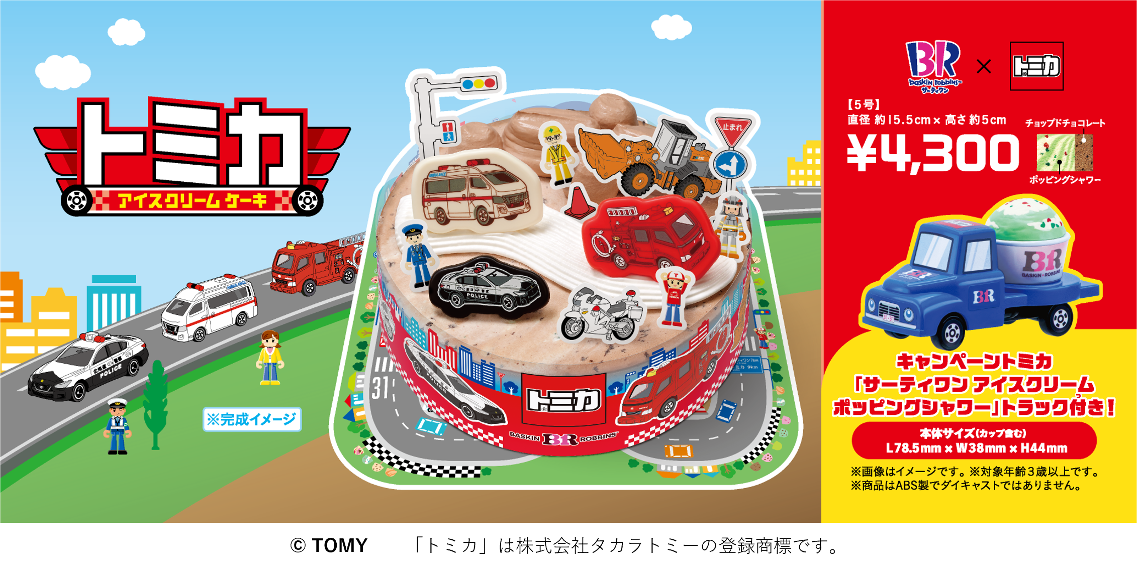 はたらく車がアイスクリームケーキになって大集合!トミカ アイスクリームケーキ -