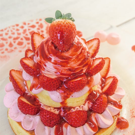 旬を迎え、真っ赤に艶めくフレッシュ苺を贅沢に使用し、何度も試作を重ねて完成させたパンケーキは苺好きにはたまらないスペシャルパンケーキ。