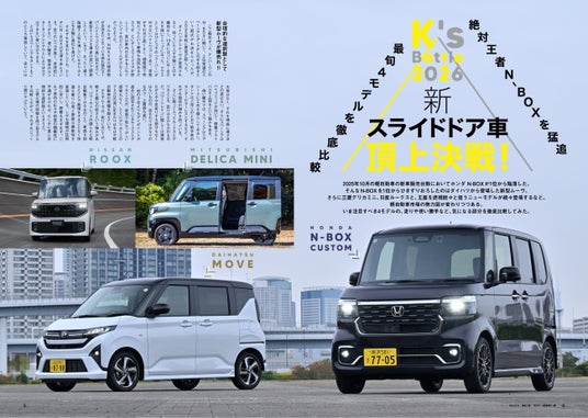 2026年も軽自動車市場を牽引するのはスライドドア車。中でも注目したいのが、フルモデルチェンジを果たした日産ルークスと三菱デリカミニ。そして2025年10月の月間新車販売台数で1位に躍り出たダイハツ・ムーヴである。そんな注目の3台と絶対王者N-BOXのスライドドア車の頂上対決。走り/外装/内装のポイントを厳選して比較してみたので見比べて欲しい。