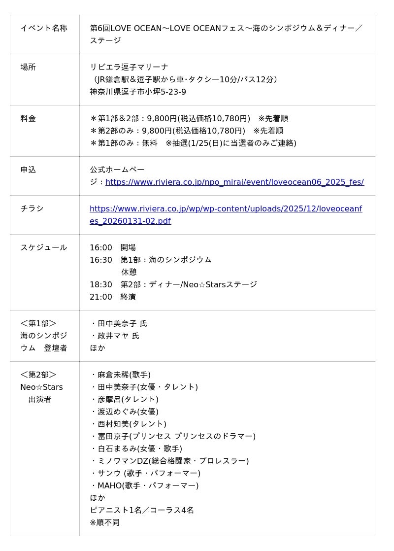 公式サイト:https://www.riviera.co.jp/npo_mirai/event/loveocean/