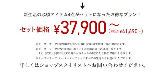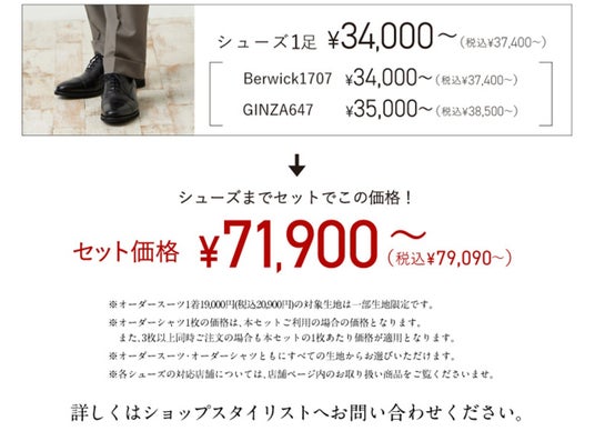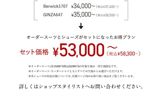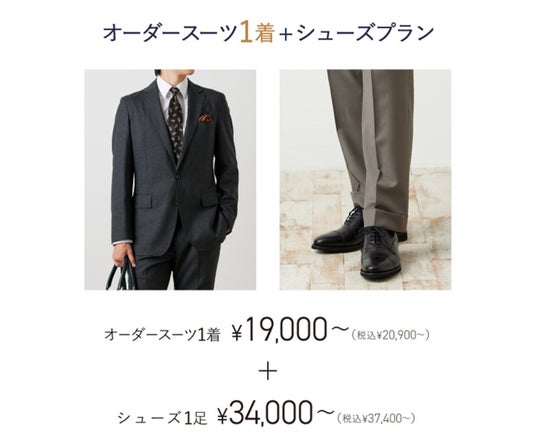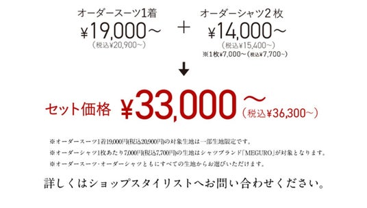 オーダースーツ+オーダーシャツ2枚プランセット価格:33,000円~(税込36,300円~)