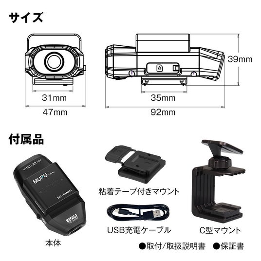 前後カメラともに録画解像度はフルHD200万画素、広角120°。手のひらサイズなので、持ち運びに便利のこだわり設計。