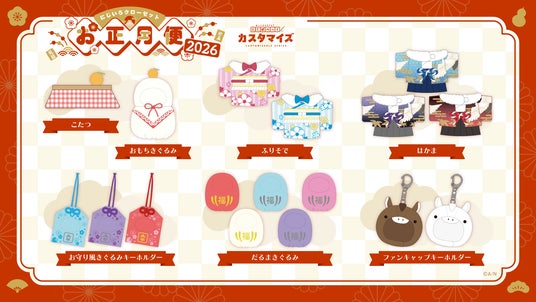 グッズラインナップは、ファンキャップキーホルダー、おもちきぐるみ、だるまきぐるみ、お守り風きぐるみキーホルダー 、はかま、ふりそで、こたつの全7種類。