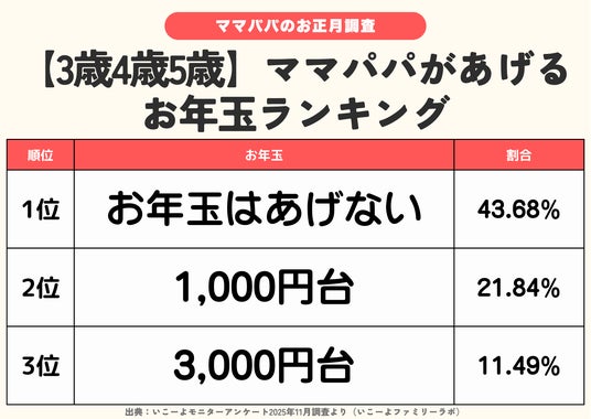 - 3歳~5歳のお年玉ランキングとお年玉管理方法・マネー教育意識