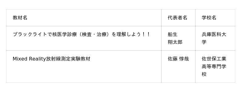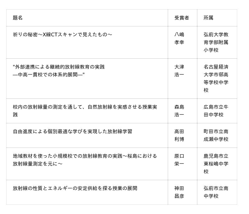 教具の開発、学習指導案などを募集。放射線授業事例コンテストを毎年実施しています。この度、以下のとおり受賞作品が決定しましたので発表いたします。