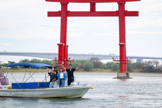 1498 年の明応地震などの大災害によって、浜名湖と遠州灘を隔てていた砂洲が決壊し、湖が海とつながった水 道を指します。この場所は「今、切れた」という意味から「今切(いまぎれ)」と呼ばれるようになりまし た。(諸説あり)歴史的背景を漁船で回るツアー。