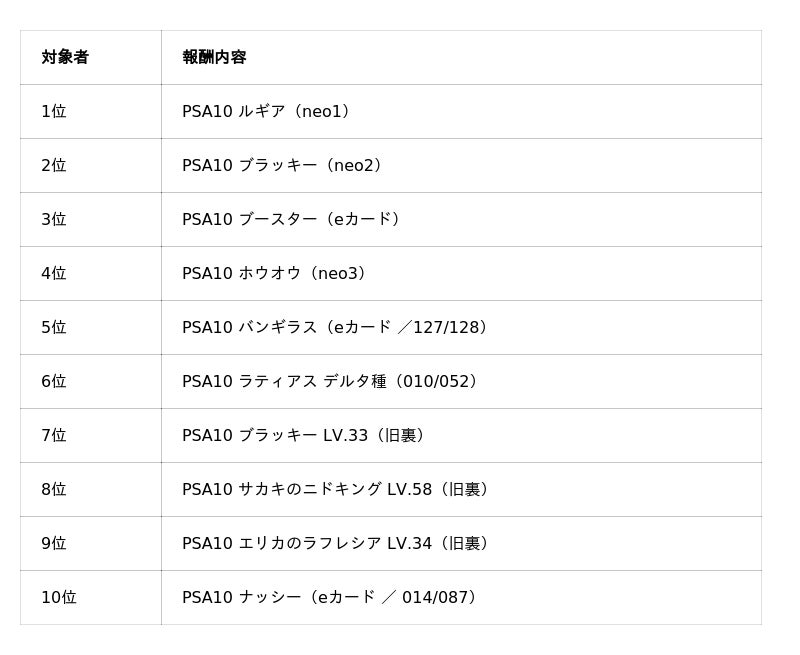さらに、ランキング上位10名様には、PSA10カードをプレゼントいたします。