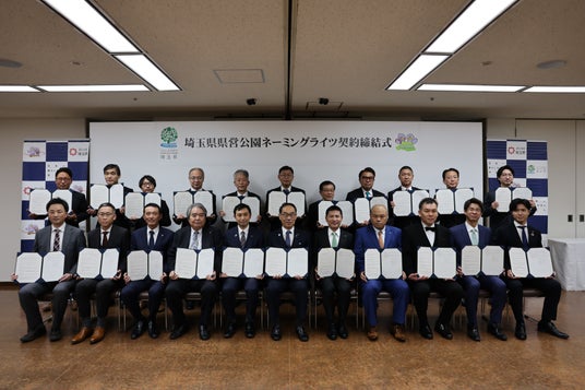 2025年12月24日に開催された締結式 (左から)埼玉県 大野元裕知事、当社マネージャー 矢吹隼人