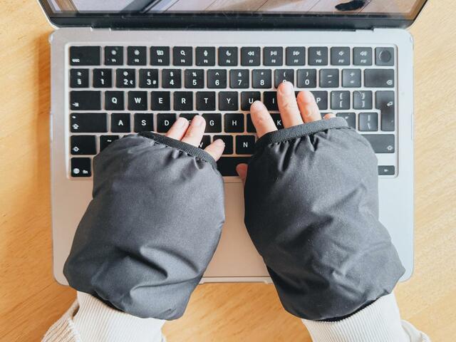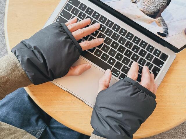 素材には吸湿発熱性のわたが使われていて、キーボードを打っている間に手があたたまってきます。
