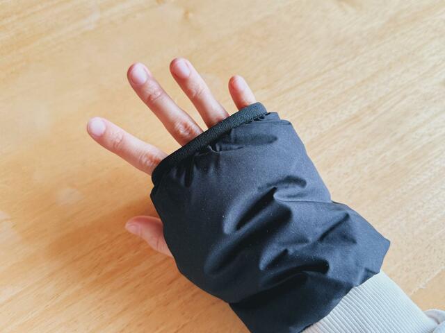 無印良品の「吸湿発熱中わた 表面撥水 ハンドウォーマー」は、指先が開いたハンドウォーマー。