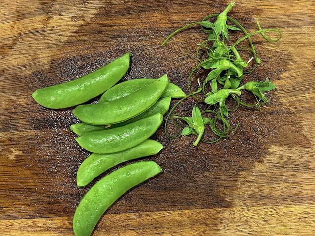 2. スナップエンドウ(または、きぬさや)は筋を取っておく。