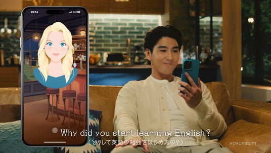 今回の新CM「夢を語る篇」では、2025年4月より放映した「撮影終わり篇」に続き、自宅で英会話に取り組む賀来賢人さんの様子が描かれます。CMの中で、AIバディのEmilyから「Why did you start learning English?(なぜ英語学習を始めたの?)」と英語学習を始めたきっかけを問われ、賀来さんは「I want to act in international films someday, and English felt like the way to make that happen.(国際的な映画に出るのが夢で、英語が絶対に必要だと思ったんだ。)」と自身のリアルな夢を語っています。賀来賢人さんの英語音声を収録!「AIバディ」として登場する特別コンテンツおよび激励メッセージを期間限定で搭載
