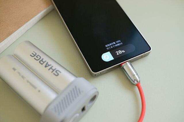 本体サイズは、一般的な10,000mAhクラスのバッテリーに比べるとコンパクトなんだそう。とはいえ厚みはあるので、個人的には小さいとは感じなかった……。