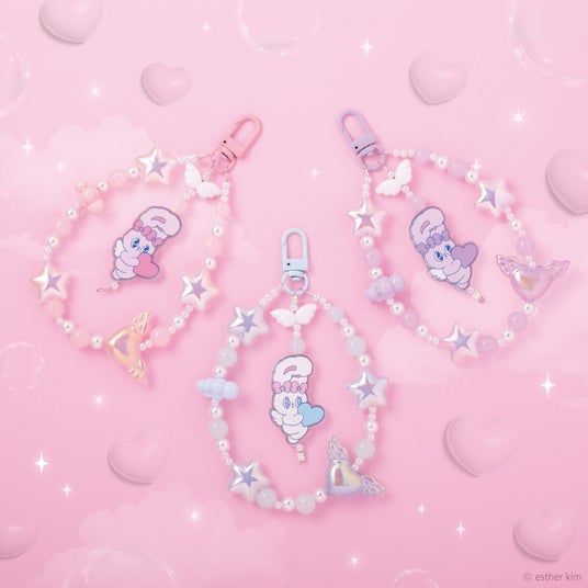雲、星、ハートなどトレンド感が魅力なストラップが登場♪(ピンクとホワイトとパープルの3色)