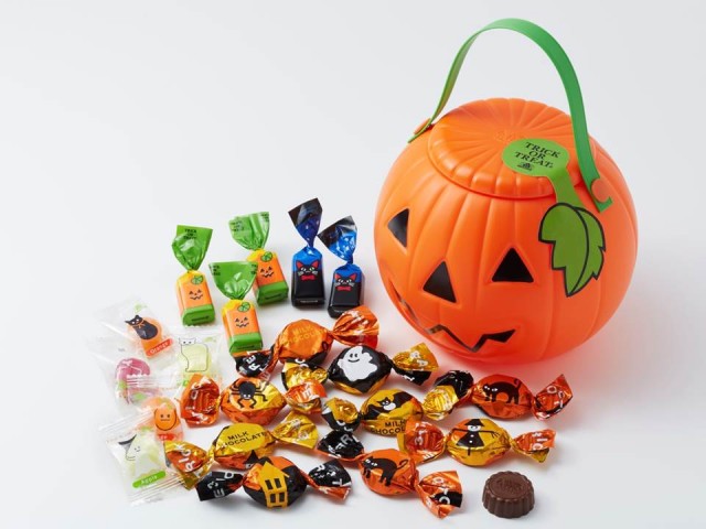 かぼちゃの容器に、お菓子が詰め合わせてあります。サイズは2種類。20個入はチョコレート、キャンディの詰合せ。小袋付きでパーティーにもおすすめ!12個入にはチョコレート、キャンディ、マシュマロが入っています。