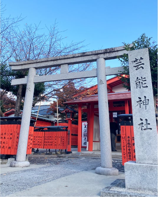 京都・嵐山にある車折神社は、芸能・芸術・技芸の神様天宇売命(あめのうずめのみこと)を祀り、芸能神社には、多くの芸能人が訪れて玉垣を奉納しています。