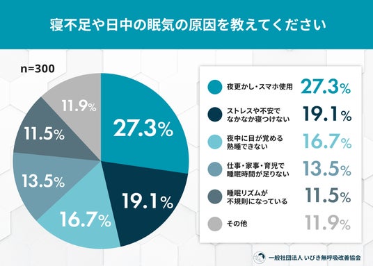 - 寝不足や眠気の原因は「夜更かし・スマホ使用」27.3%が最多