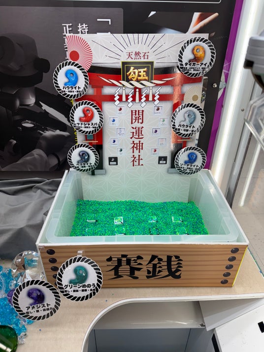 ビーズに埋もれた勾玉をクレーンで掘り当てるワクワク感と、何の宝石が出るか分からないドキドキ感が、新年最初の運試しとして楽しめます。