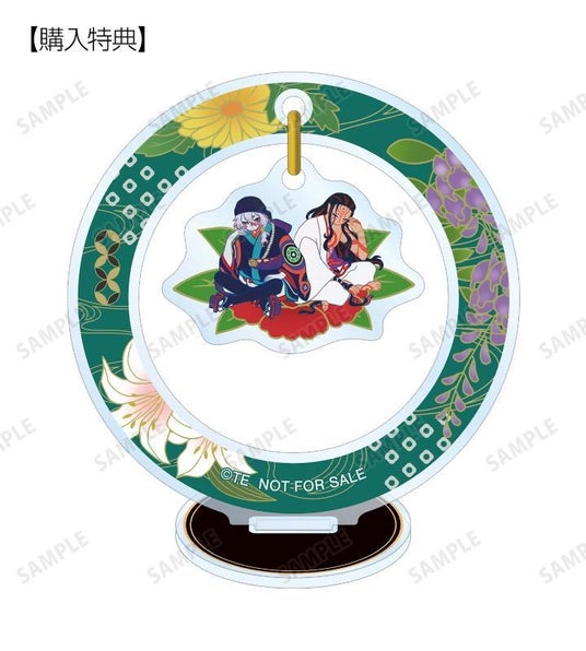 薬売り、神儀のイラストをボタニカルデザインに落とし込んで繊細なタッチで新たに描き起こし、ゆらゆら動くアクリルスタンドに仕上げました。