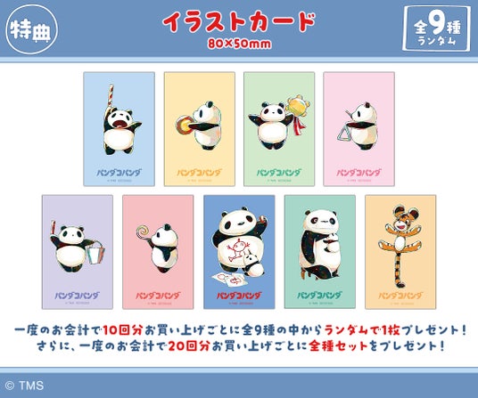 一度のお会計で10回分ご購入ごとに特典イラストカード(全9種)の中からランダムで1枚、20回分ご購入ごとに全種セットをプレゼント!