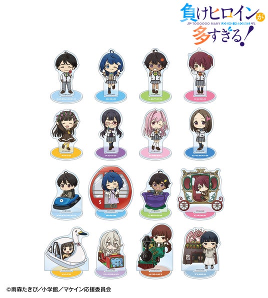 温水 和彦、八奈見 杏菜、焼塩 檸檬、小鞠 知花、温水 佳樹、月之木 古都、姫宮 華恋、朝雲 千早、志喜屋 夢子、放虎原 ひばり、馬剃 天愛星の描き起こしちびキャライラストをメインにデザインし、アクリルスタンドに仕上げました。