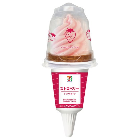 いちごソースとアイスにいちご果肉を混ぜ込んだ、いちごを堪能できるワッフルコーン。いちごの酸味とミルクの甘みが相性抜群です。外巻きのいちごソースが上から下までかかっており、たっぷりと楽しめます。