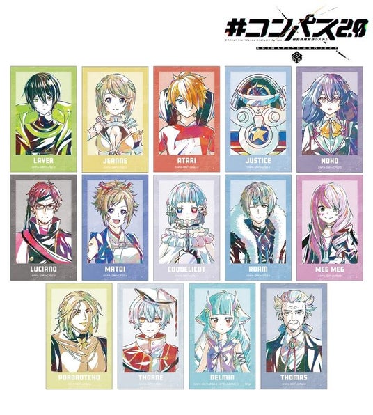 零夜、ジャンヌ、十文字アタリ、ジャスティス、双挽乃保、ルチアーノ、深川まとい、コクリコ、アダム、メグメグ、ポロロッチョ、ソーン、デルミン、トマスのイラストを新たなタッチで魅力的に表現し、アクリルカードに仕上げました。