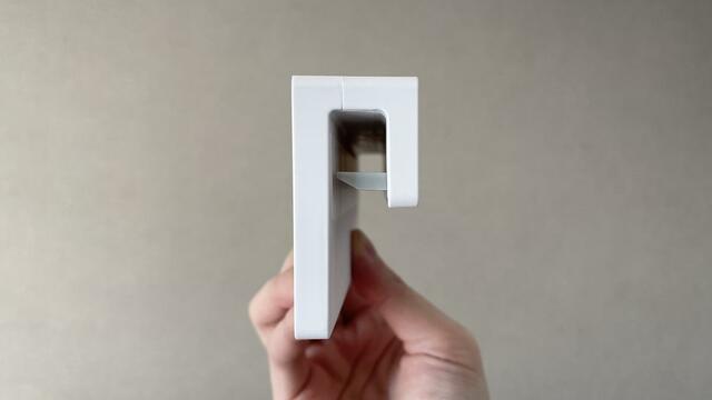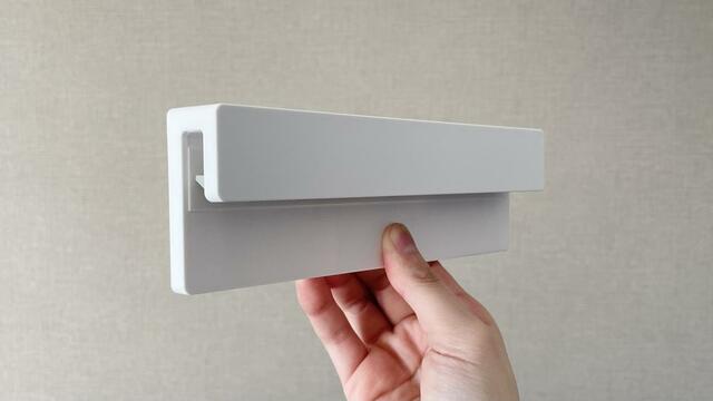 フィルムフックが貼れたら、本体背面の引っ掛け部分をフックに差し込み、本体をしっかり押し下げたら完了です。
