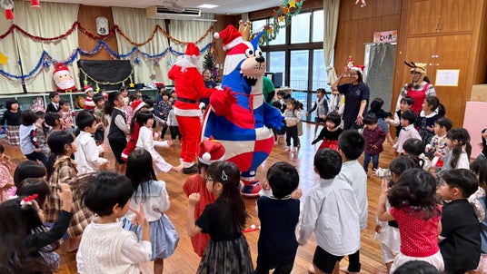 クリスマス会では、クリスマスソングに合わせて子どもたちと一緒にダンスを踊ったり、クリスマスプレゼントをかけたバスケットボールのシュートゲームを行ったりと、参加された皆さまと楽しみながら、思い出に残るひとときを過ごすことができました。