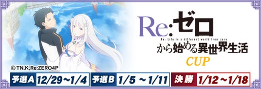 株式会社セガは、ネットワーク対戦麻雀ゲーム『セガNET麻雀 MJ』(以下、MJ)シリーズと、TVアニメ『Re:ゼロから始める異世界生活』シリーズとのコラボイベント、“Re:ゼロから始める異世界生活CUP”を2025年12月29日(月)より開始しました。