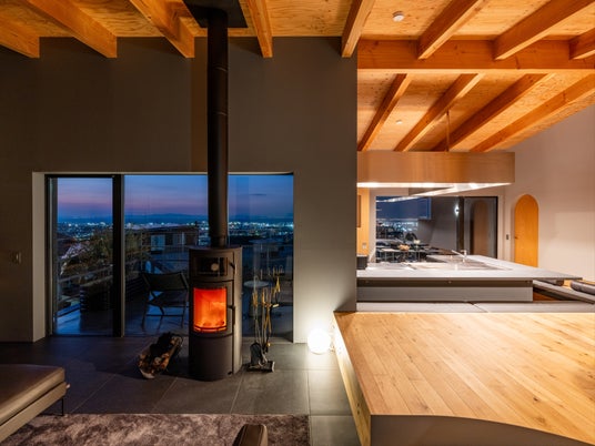 薪ストーブを設えたリビング空間 写真:三木 夕渚