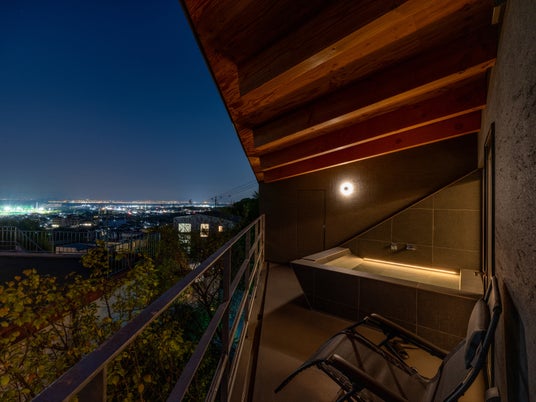 昼は陽光に包まれ、夕暮れ時には茜色の空、夜は星の瞬きと街夜景に包まれる非日常の体験を、静けさの中で、ゆっくりとお愉しみください。