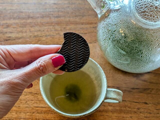 口に含むと、パイナップルやマンゴーを思わせる香りがふわり。お茶のすっきりとした渋みが重なって、あと味は驚くほど軽やか。