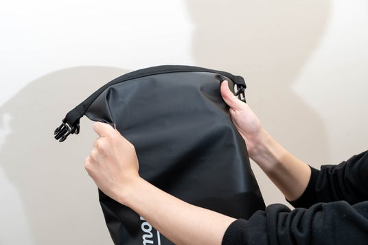 高防水・軽量設計でアウトドア性能にも妥協しない水や雨、泥から大切な荷物をしっかりガード。ロールアップ式の開口部を3回巻いて固定することで高い防水性を確保し、急な雨や水しぶきにも安心してご使用いただけます。
