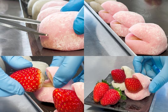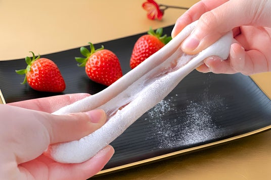 マンゲツモチの場合、つるんとなめらかな表面と、しっかりとしたコシ・弾力、さらに伸びの良さと美しい歯切れを併せ持っています。そのため噛んだ瞬間、「苺 → 餡 → 餅」と、素材が順番にほどけていく“層のある食体験”が生まれます。餅は決して「脇役」ではなく、苺と餡を引き立てながら、自らも確かな存在感を放つ。──それこそが、マンゲツモチならではの強さです。