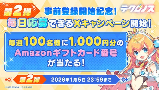合同会社EXNOA(本社:東京都港区、CEO:東條 寛、URL:https://games.dmm.com)と株式会社テクロス(本社:京都府京都市右京区、代表:辻 拓也、URL:https://techcross.co.jp)は4つの刻が交差するクロスヒロインRPG『テクロノス』(https://techcronoss.com)の事前登録者数が5万人を突破したことを発表。これによりサービス開始後にガチャチケット2枚の配布が決定した。
