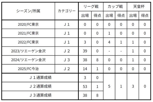※2020、2021シーズンはFC東京 第2種登録選手としてプレー
