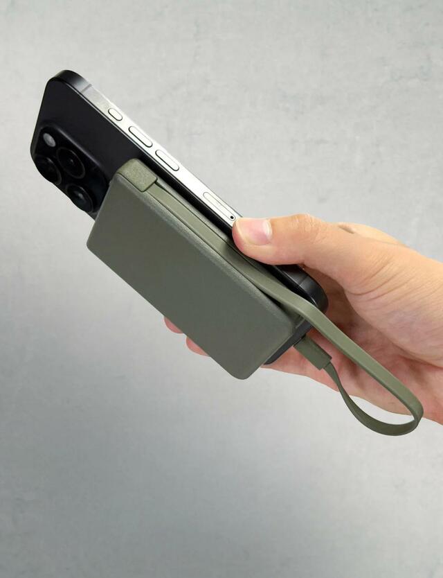 USB-Cケーブル(最大15W出力)が本体に内蔵されているだけでもすごいのに、スマートフォンにマグネット吸着する仕組みまで搭載されています。